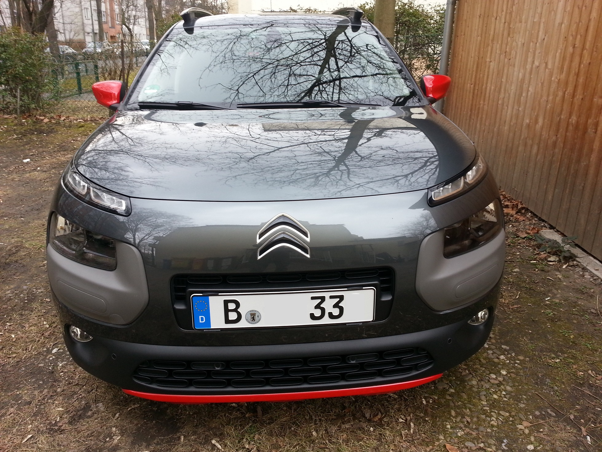Von hinten ist doch schon ein weiteres Bild drin....................und jetzt mit Winterreifen und schmutzig ist nicht gerade ideal !
